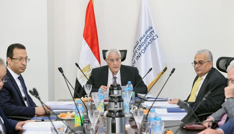 عقد مجلس أمناء جامعة مصر للمعلوماتية اجتماعه الدورى برئاسة المستشار عدلى منصور رئيس جمهورية مصر العربية السابق بمقر الجامعة بمدينة المعرفة بالعاصمة الإدارية الجديدة لأول مرة بعد اكتماله وبحضور جميع أعضاء المجلس لمناقشة دور الجامعة فى دعم صناعة تكنولوجيا المعلومات وريادة الأعمال من خلال البرامج الدراسية والبحثية التى تقدمها الجامعة لطلابها.