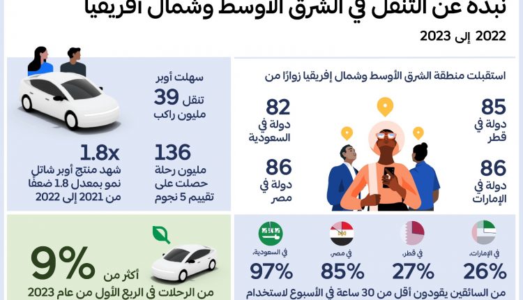أعلنت أوبر عن رؤى جديدة حول التنقل إستنادًا إلى بيانات من منطقة الشرق الأوسط وشمال إفريقيا والتي تظهر تأثير النقل التشاركي على السياحة والنمو الاقتصادي والطريق نحو تنقل أكثر استدامة.