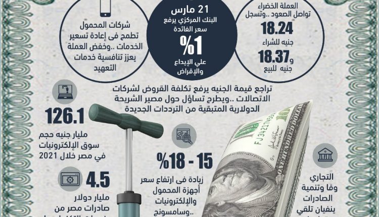 من ناحية أخرى قالت مصادر بشركات المحمول إن الشركات تدرس كل على حدا تأثير ارتفاع سعر الدولار في السوق المحلية على استثمارات الشركات خلال الفترة المقبلة، كما تدرس في الوقت نفسه تأثير رفع سعر الفائدة بنسبة 1% خلال اجتماع استثنائي للجنة السياسات النقدية التابعة للبنك المركزي على تكاليفها التشغيلية و مدخلات الإنتاج، وتكاليف خدمة الدين.