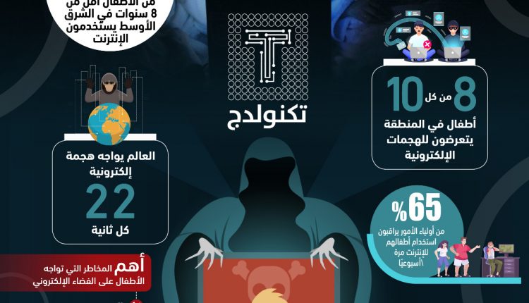 وفقًا للدراسة نفسها الصادرة عن بوسطن جروب فإن منطقة الشرق الأوسط أكثر عرضة للتهديدات الإلكترونية نظرًا لاعتماد الأطفال بصورة اكبر على الإنترنت حيث يصل نسبة انتشار الدخول على الفضاء الإلكتروني حوالي 65% من الأطفال في المنطقة، وبالتالي ترتفع التهديدات إلى 79%، أي أن ثمانية من كل 10 أطفال (أقل من 8 سنوات) تعرضوا لتهديد إلكتروني مرة واحدة على الأقل.