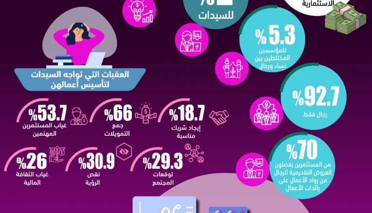 وعرض بعض الأرقام حيث استطاع سوق الشركات الناشئة جمع 660 مليار دولار عالميًا 2% موجه للشركات مؤسساتها سيدات مبينًا أن 18% من التمويلات موجهة لمؤسسي رجال ونساء معًا.