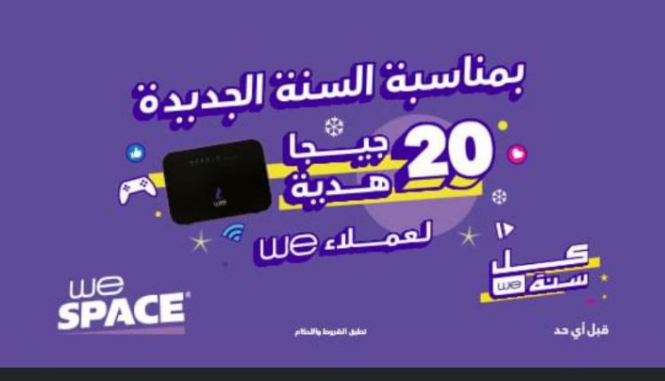 أعلنت الشركة المصرية للاتصالات we عبر صفحاتها المختلفة على مواقع التواصل الاجتماعي، عن منح جميع عملاء WE Space عشرين جيجا بايت هدية بمناسبة قرب حلول العام الجديدـ حيث سيتم إضافة الـ 20 جيجا بايت الهدية لجميع العملاء بمجرد تجديد الباقة، وستكون صالحة لمدة ثلاثين يومًا.