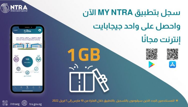 وجه الجهاز القومي لتنظيم الاتصالات شركات المحمول الأربع العاملة بالسوق المصري بمنح مستخدمي التطبيق التفاعلي للجهاز My NTRA واحد جيجابايت انترنت مجانية وذلك للمستخدمين الجدد الذين سيقومون بالتسجيل وإنشاء حساب جديد بالتطبيق خلال الفترة من 10 مارس إلى 1 ابريل 2022 صالحة للاستخدام خلال أسبوع من الحصول عليها، ويأتي ذلك في إطار حرص الجهاز على تعزيز طرق التواصل مع المستخدمين وتشجيعهم على استخدام الطرق الرقمية بديلًا عن الطرق التقليدية في الحصول على الخدمات وتماشيًا مع سياسة الدولة في دعم عملية التحول الرقمي.