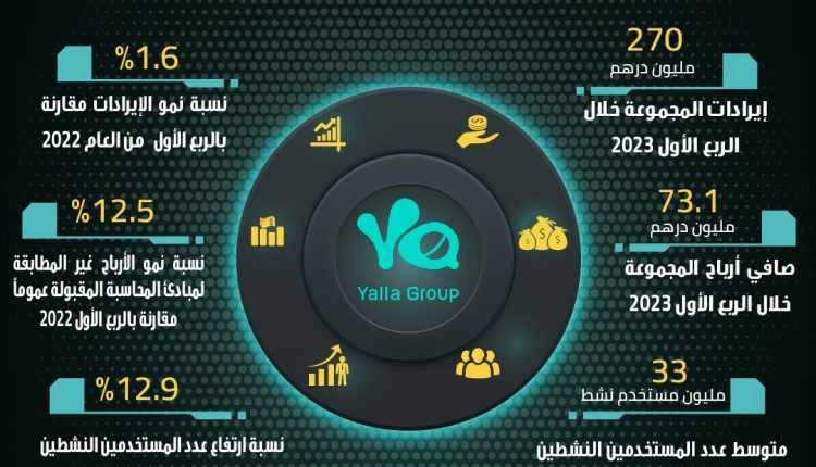 ووفقاً للبيانات المالية التي أعلنتها مجموعة “يلا المحدودة”، مالكة أكبر منصة تواصل اجتماعي وألعاب في الشرق الأوسط وشمال افريقيا، ارتفع صافي أرباح المجموعة إلى 73.1 مليون درهم بنسبة نمو وصلت 12.5٪ مقارنة بالربع الأول من العام الماضي، ما يعكس متانة الأداء المالي للشركة بفضل الزخم المستمر في نمو أعمالها.