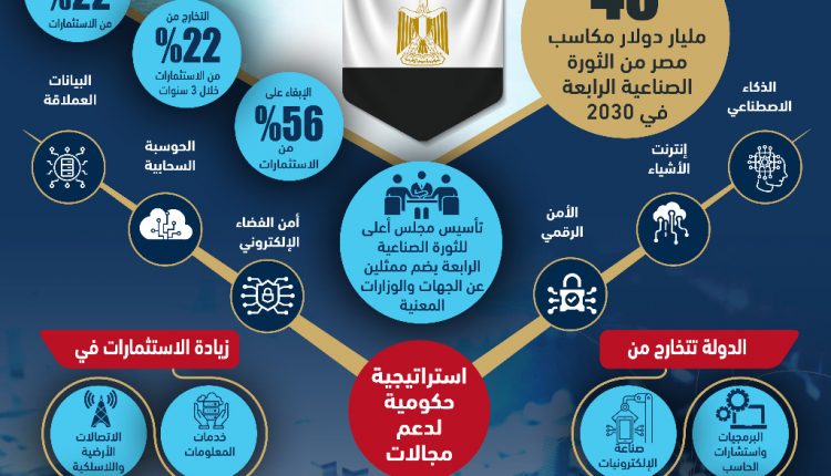 توقعت مسودة أولية لوثيقة ملكية الدولة تحقيق 43 مليار دولار مكاسب للاقتصاد المصري من الثورة الصناعية الرابعة في 2030 وقالت الوثيقة التي حصلت عليها “تكنولدج” إن الحكومة ستؤسس مجلس أعلى للثورة الصناعية الرابعة مع الإبقاء على 56% من الاستثمارات والتخارج من 22% من الاستثمارات خلال 3 سنوات (تفاصيل أكثر في جراف العدد).