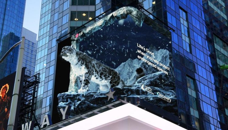 ومن خلال الكشف عن لوحات الإعلانات الديناميكية الخاصة بالشركة في تايمز سكوير بمدينة نيويورك، تقدم إل جي حملة رقمية خارجية لعرض محتوى بصرى يهدف لتسليط الضوء على فصائل الحيوانات الأكثر عرضة للخطر والمُهددة بالإنقراض بجانب الفصائل المستعادة التى تحتاج إلى حماية مستمرة.