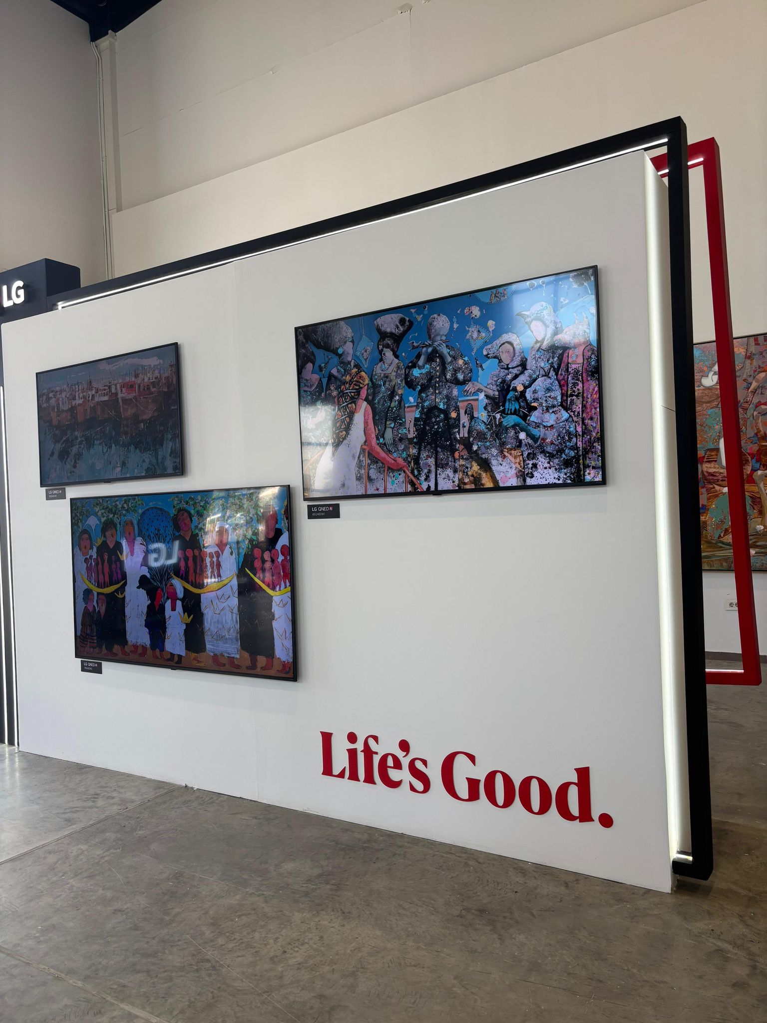 وشهد الحدث معرض فني مميز يجمع بين تقنيات “إل جي” المتقدمة في مجال الشاشات والفن المعاصر، حيث تم تسليط الضوء على مجموعة الشاشات الجديدة من طرازات OLED وQNED، والتي تضمنت شاشة جديدة بقياس 100 بوصة. وتعد هذه الشاشات بمثابة لوحة فنية عصرية مثالية، بفضل قدرتها على عرض اللون الأسود الحقيقي والتباين اللانهائي ودقة الألوان الاحترافية، مما يتيح عرض الأعمال الرقمية والفنية بإستخدام الذكاء الاصطناعي بأعلى مستويات الدقة والواقعية.