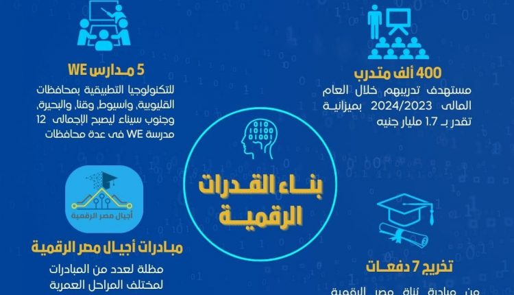 - إطلاق مبادرات أجيال مصر الرقمية لتكون مظلة لعدد من مبادرات بناء القدرات الرقمية المقدمة بالمجان لمختلف المراحل العمرية بدءا من الصف الرابع الإبتدائى وصولا لطلاب الجامعات والخريجين من مختلف الخلفيات الأكاديمية لتنمية مهاراتهم فى التخصصات الحديثة فى مجال الاتصالات وتكنولوجيا المعلومات ومنها الذكاء الاصطناعى، وعلوم البيانات، والأمن السيبرانى، والنظم المدمجة، والفنون الرقمية، وإدارة موارد المؤسسات وغيرها بما يتواكب مع متطلبات سوق العمل المحلى والعالمى. ويتم تنفيذ المبادرات بالتعاون مع عدد من كبرى الجامعات الدولية والشركات المحلية والعالمية المتخصصة فى مجال الاتصالات وتكنولوجيا المعلومات.
