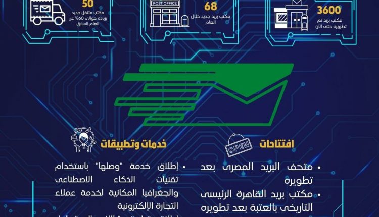 وتم خلال العام المنصرم افتتاح مكتب بريد القاهرة الرئيسى التاريخى بالعتبة بعد تطويره برؤية مبتكرة للحفاظ على قيمته التاريخية والتصميم المعمارى الأصلى للمبنى، إلى جانب تزويده بأحدث الأنظمة والحلول التكنولوجية لتقديم جميع الخدمات المالية والبريدية والحكومية وخدمات مصر الرقمية للمواطنين، وكذلك افتتاح 3 مكاتب تاريخية بأسوان.