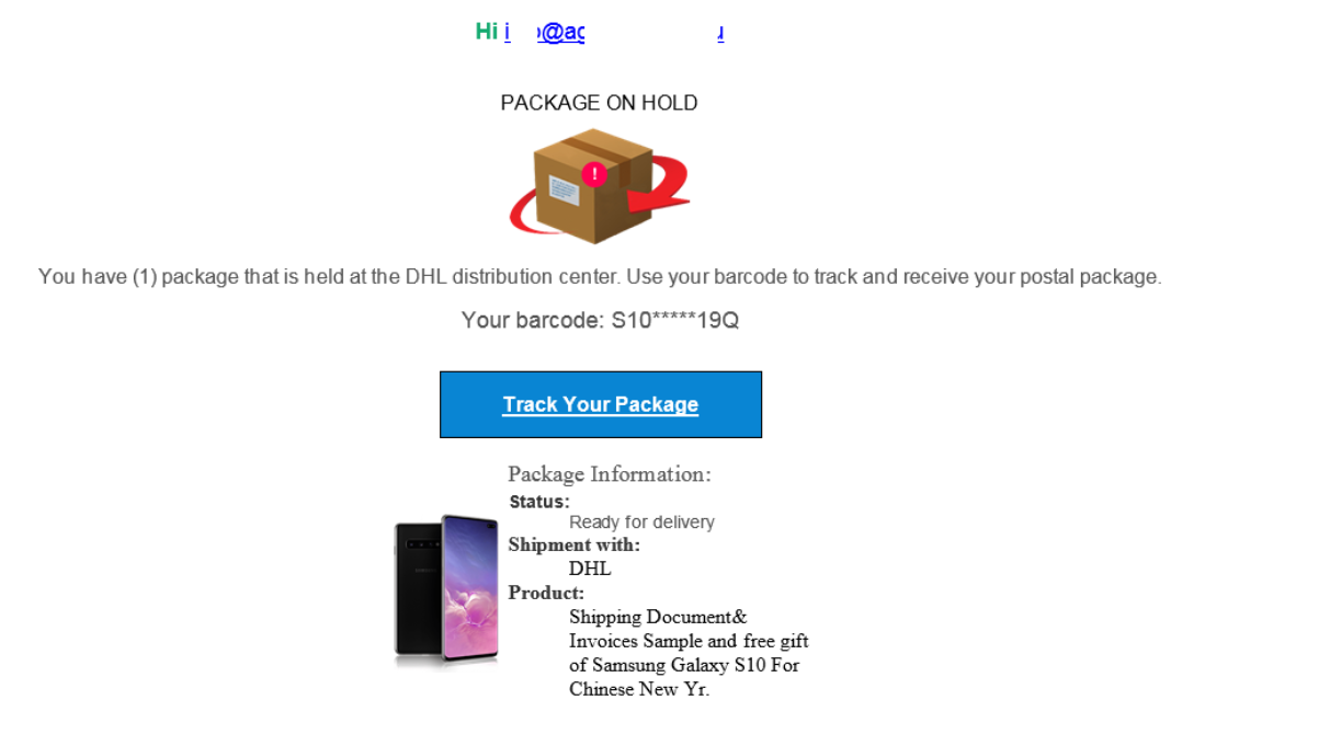 مثال على عرض للتصيد باستخدام هاتف “سامسونج” بدا مُرسلًا بوصفه هدية بمناسبة السنة الصينية الجديدة