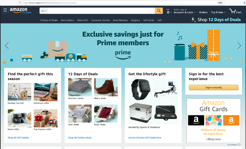 وما زال الاحتيال وسيلة فعالة لدفع المستخدمين إلى تقديم بياناتهم الشخصية وبيانات البطاقات المصرفية إلى مجرمي الإنترنت من دون علمهم. وغالبًا ما تستخدم العلامات التجارية الشعبية طُعمًا في هذه المساعي الخبيثة. واشتملت الأمثلة التي اكتشفتها كاسبرسكي على صفحة “أمازون” وهمية تستدرج المستخدمين بعروض عيد الميلاد لسرقة بيانات الاعتماد الخاصة بحساباتهم Amazon Prime.