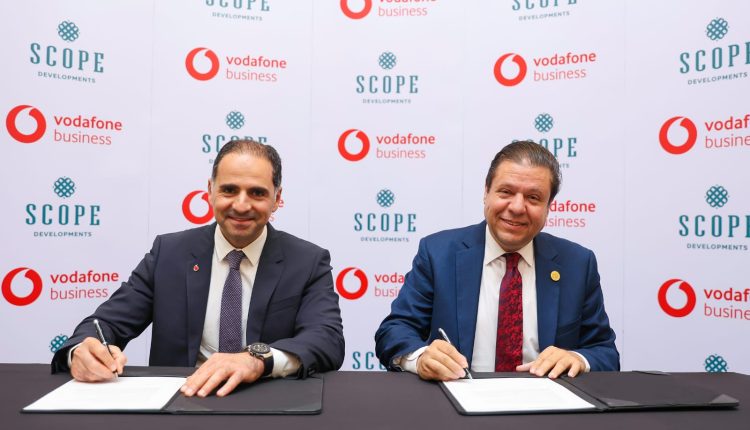 ووقع التعاقد كل من محمد غباشي، رئيس مجلس إدارة شركة سكوب العقارية، وأمجد نافع، رئيس إدارة الحلول الذكية ومبيعات الشركات ڤودافون بيزنس.