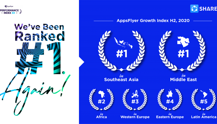 أعلنت منصة شيرإتSHAREit ، التطبيق العالمي للألعاب ومشاركة الملفات وتدفق المحتوى، عن فوزها للمرة الثانية بلقب منصة نشر الوسائط الأسرع نمواً في الشرق الأوسط وجنوب شرق آسيا – حيث احتلت المرتبة الأولى في مؤشر أداء AppsFlyer H2 2020.