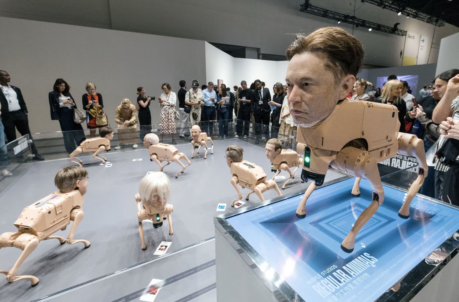 يضم مشروعه الجديد “الحيوانات العادية” كلابًا روبوتية بقيمة 100 ألف دولار، تحمل رؤوسًا شديدة الواقعية تشبه إيلون ماسك ومارك زوكربيرج وجيف بيزوس، إلى جانب أساطير الفن بابلو بيكاسو وأندي وارهول.