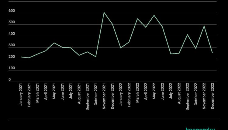 تنشر الجهات التخريبية الواقفة وراء الهجمات ببرمجيات الفدية في مدوناتها، معلومات حول حوادث القرصنة الناجحة التي تشنها على المؤسسات، وقد باتت أكثر نشاطاً في ذلك، إذ نما عدد هذه المنشورات في عام 2022. وتجاوز رقم الذروة 500 منشور في الشهر، وتكرر الأمر عدّة مرات بين نهاية عام 2021 والنصف الأول من عام 2022. وكان هذا الرقم بالمقارنة يتراوح بين 200 و300 منشور شهرياً في بداية 2021. كذلك ارتفع نشاط الابتزاز في نهاية العام الماضي. ففي شهري سبتمبر ونوفمبر تتبعت وحدة Kaspersky Digital Footprint Intelligence الخاصة باستقصاء الحضور الرقمي للمؤسسات ما يقرب من 400 و500 منشور على التوالي.