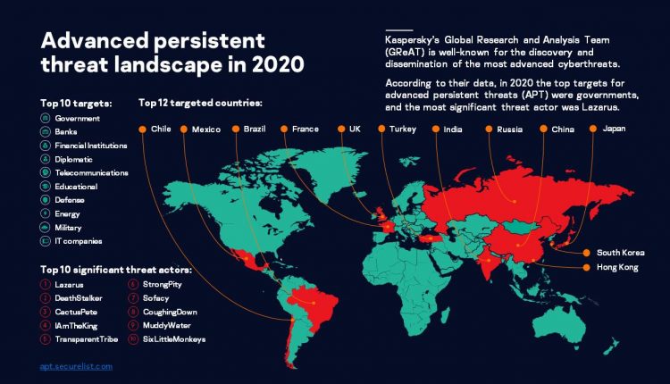 كشف باحثو كاسبرسكي عن رؤيتهم حيال التهديدات المتقدمة المستمرة (APTs) في العام 2021، موضّحين كيف سيتغير مشهد الهجمات الموجّهة في الأشهر المقبلة. ومن المتوقع ألاّ تقتصر آثار الاضطرابات التي حدثت خلال العام 2020 على إحداث العديد من التغيّرات الهيكلية والاستراتيجية في الحياة اليومية، ولكنها سوف تمتدّ لتشمل مجال الهجمات الموجّهة أيضًا، الأمر الذي يُعزى في جانب منه إلى الاتساع الكبير الذي حصل حديثًا في سطح البيئة المعرضة للهجمات نتيجة التوسع في استخدام التقنيات في العمل والتعلّم والتواصل عن بُعد. ويتوقع الخبراء ظهور نواقل جديدة للهجمات، مثل استهداف الأجهزة الشبكية والبحث عن ثغرات في شبكات الاتصالات القائمة على تقنيات الجيل الخامس، علاوة على حدوث هجمات متعددة المراحل وإجراءات إيجابية ضد الأنشطة التي تساهم في تمكين الهجمات الإلكترونية، مثل هجمات استغلال الثغرات المعروفة باسم zero-day.