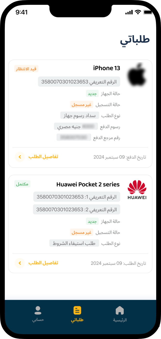 في حالة شرائك لجهاز محمول من وكيل معتمد، لن تحتاج لتسجيل الجهاز أو سداد رسوم عند استبداله بجهاز جديد من الوكيل المعتمد.