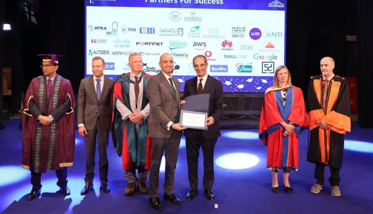 شهد الدكتور عمرو طلعت وزير الاتصالات وتكنولوجيا المعلومات فعاليات حفل تخرج طلاب مبادرة بُناة مصر الرقمية والتى أطلقتها وزارة الاتصالات وتكنولوجيا المعلومات؛ حيث تم منح درجة الماجستير المهنى لعدد 257 طالب فى تخصصات الذكاء الاصطناعى وعلوم البيانات، والفنون الرقمية، والتكنولوجيا المالية، وعلوم الروبوتات والأتمتة، والأمن السيبرانى بالتعاون مع جامعات أوتاوا وكوينز الكنديتان، وكولدج كورك الأيرلندية، وجامعة سينز الماليزية؛ وذلك خلال الحفل الذى أقيم فى قاعة الاحتفالات الكبرى بجامعة القاهرة بحضور ممثلى الجامعات الدولية، والسفراء، وممثلى الشركات المحلية والعالمية المشاركة فى المبادرة، وأهالى الخريجين.