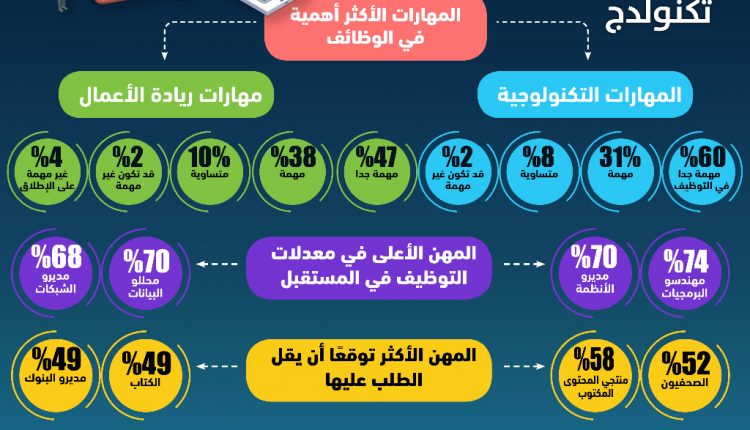 في استطلاع مشترك بين Bayt  و YouGov جاءت وظائف مهندسي البرمجيات ومديري النظم ومحللي البيانات ضمن الوظائف المرشحة أكثر من غيرها للنمو في المستقبل، بينما جاءت وظائف مثل كتاب ومنتجي المحتوى ضمن المهن المرشحة بقوة للتراجع خلال السنوات المقبلة.