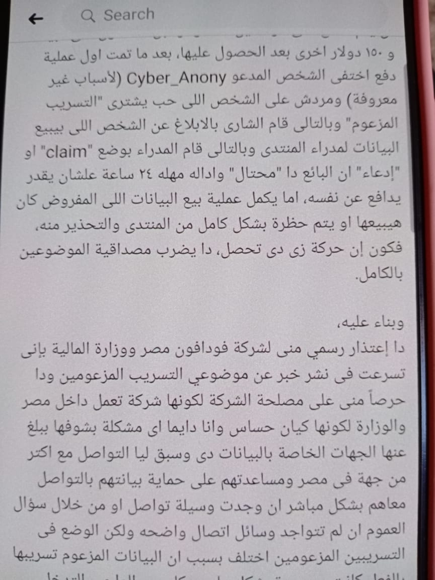 صاحب بوست «تسريب بيانات فودافون» يزيله ويعتذر للشركة اتصالات بواسطة تكنولدج في أغسطس 20, 2020 شارك اعتذر خبير أمن المعلومات، محمد عبد الباسط، عن كتابته منشورا حول تسريب بيانات خاصة ب12 مليون عميل في شركة فودافون مصر، وبعض المستندات الخاصة بوزارة المالية، كما قام بإزالة المنشور الأول من صفحته على منصات التواصل الاجتماعي. شارك FacebookTwitterGoogle+ReddItWhatsAppPinterestالبريد الإلكتروني
