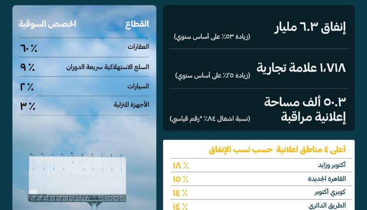 أصدرت اليوم شركة AdMazad، الشركة المتخصصة في تطوير AdMetrics، أداة قياس وتحليل أداء إعلانات الطرق في مصر، تقريرها السنوي الخامس عن السوق. ويكشف التقرير عن نمو كبير بنسبة 53% في سوق إعلانات الطرق المصرية خلال عام 2024، حيث بلغ الإنفاق 6.3 مليارات جنيه مصري، مقابل 4.2 مليار جنيه مصري في عام 2023. وتستند هذه النتائج إلى عمليات تدقيق شاملة لأكثر من ٥٠ ألف لوحة إعلانية في القاهرة الكبرى، والإسكندرية، والدقهلية، والغربية، والساحل الشمالي.