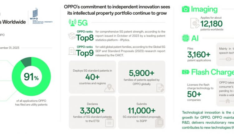 وتُعد OPPO أحد أهم مالكي براءات الاختراع الأساسية القياسية لتكنولوجيات الجيل الخامس، وأحد الشركات العالمية المتخصصةفي مجال ابتكار الأجهزة والهواتف الذكية، ولذلك فالشركة تُعد من المُبتكرين والمُنفذين للمعايير القياسية لتلك التكنولوجيات. بداية من 31 ديسمبر، 2023، قامت شركة OPPO بنشر براءات الاختراع القياسية لاتصالات الجيل الخامس في أكثر من 40 دولة ومنطقة حول العالم، فضلاً عن أكثر من 5900 عائلة لبراءات الاختراع، وأكثر من 3300 براءة اختراع قياسية في مجال تكنولوجيات الجيل الخامس تم اعلانها للمعهد الأوروبي لمعايير الاتصالات، هذا بجانب 11 ألف وثيقة تم تسليمها إلى مشروع شراكة الجيل الثالث (3GPP). وطبقاً لتقرير تكنولوجيات الجيل الخامس 2023، والذي أصدرته الأكاديمية الصينية لتكنولوجيا المعلومات والاتصالات (CAICT)، بالإضافة إلى تقرير أصدرته مؤسسة IPlytics في أكتوبر 2023، تأتي OPPO ضمن أفضل الشركات على مستوى العالم من حيث قوة وتميز براءات اختراعات تكنولوجيات الجيل الخامس الأساسية.